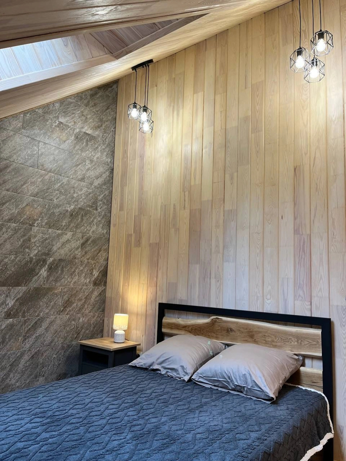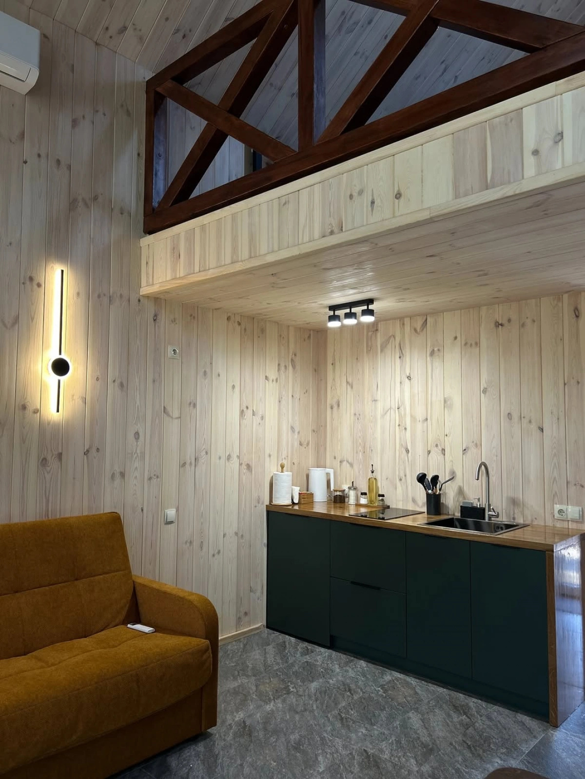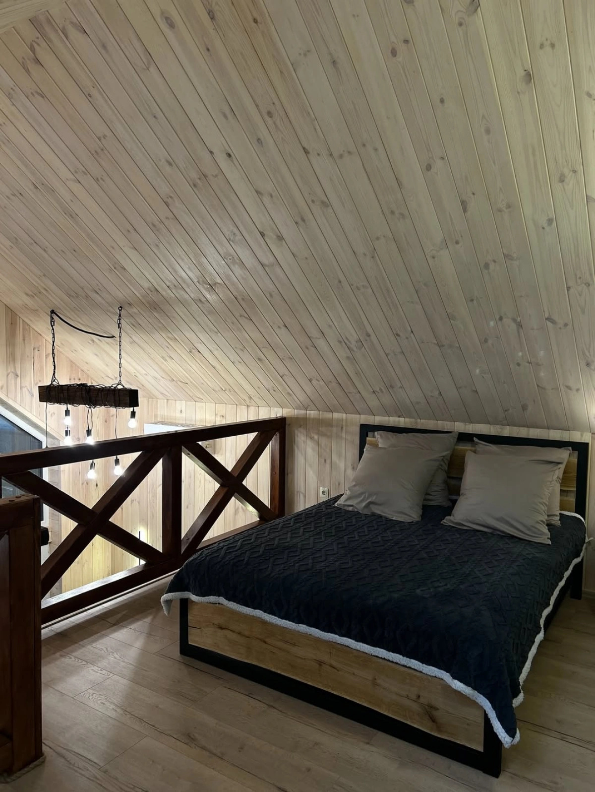 Дом №2: 1 спальня с двуспальной кроватью, гостиная с диван-кроватью, чан (купель).