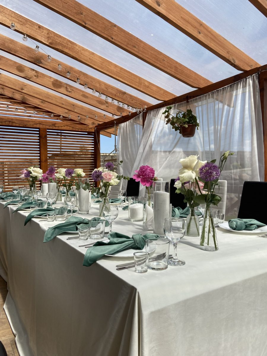 Первый — это гостевой домик до 6 человек с русской баней и купелью Фурако на улице. Второй — это большой коттедж, который прекрасно подойдет для компании до 15 человек, и при желании Вы можете организовать мини-свадьбу, День рождения, юбилей или другое мероприятие. В нашей просторной гостиной легко можно накрыть стол на 20 человек.