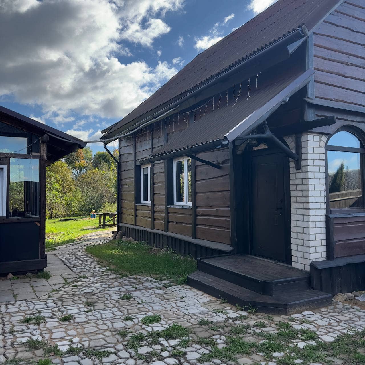 Усадьба «Седьмое Небо» — это два отдельных современных объекта на одной охраняемой территории в 25 соток для отдыха и праздников. Идеально для свадеб, банкетов, корпоративов и отдыха с компанией. Основной коттедж до 16 гостей: просторный банкетный зал, разделенный на две зоны: гостиная с камином, большими деревянными столами и мягкими креслами, и кухня-лаунж с угловым диваном. Акустика «Амфитон», регулируемый свет, Wi-Fi, теплые полы, полностью оборудованная кухня. Есть 7 спальных мест. Банный комплекс до 8 гостей: гостевой дом с парной, отдельной террасой с зоной барбекю. При аренде на сутки добавляет 9 спальных мест. Вместе с коттеджем на усадьбе можно разместить до 16 человек на ночлег. Территория и локация: крытая беседка, мангальная зона, костровище у ручья, детская площадка. Речка Полюшка, 200 м до Западной Двины, лес рядом. Удобное расположение: 2 км от Новополоцка, 8 км от Полоцка.