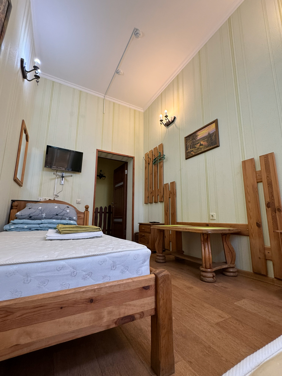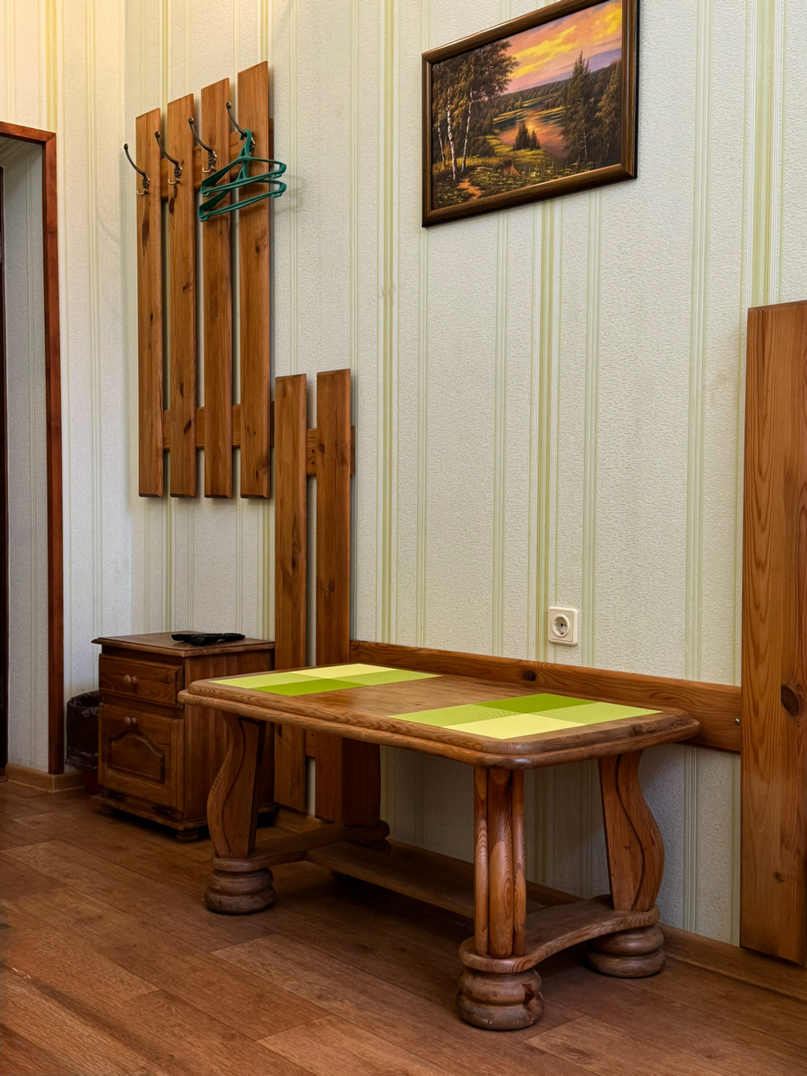Добро пожаловать в дом, где ваша компания чувствует себя как дома — только лучше. Здесь просторная гостиная, где можно собраться за общим столом, посмотреть фильм или просто спокойно провести вечер. Четыре отдельные спальни — в каждой телевизор и холодильник, чтобы всё нужное было под рукой. Есть и отдельная игровая комната: здесь не только спальные места, но и караоке, мини-футбол и настольные игры — отлично подойдёт для тех, кто любит поиграть и пошуметь. Для вашего комфорта — три санузла и две душевые, чтобы никто не стоял в очереди. А если вы привыкли готовить сами — на кухне есть всё: плита, посуда, холодильник, микроволновка, телевизор и обеденный стол. Дом вмещает до 14 гостей — спокойно, удобно и без соседей. Добро пожаловать в Вясковую хату! Приезжайте, отдыхайте и чувствуйте себя как дома.
