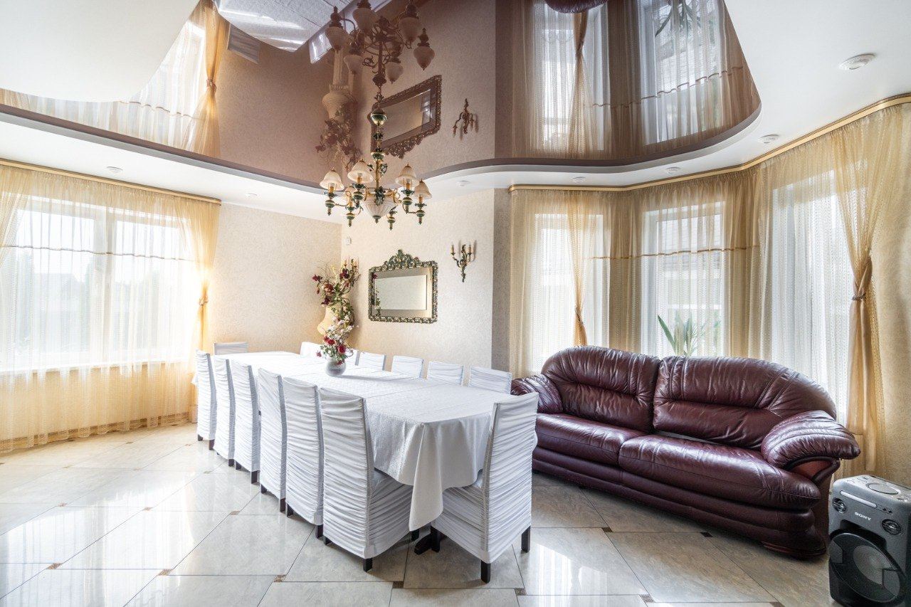 Комфортабельная усадьба сдается как на сутки, так и на длительный период. Дома находятся в элитном поселке Юхновка в 12 км от Минска. До аэpопоpтa 15 км, дo цeнтpa Минска 23 км. Есть несколько магазинов и аптека на территории посёлка. Осуществляются доставки. Такси до вокзала от 30 руб. На территории усадьбы находятся два дома. Белорусская кухня от хозяйки усадьбы (голубцы, пельмени, солянка, драники, соления домашнего производства и многое другое). Все можно заказать до вашего заезда. Небольшим компаниям до 5 человек предлагается отдых в малом доме. Помимо спален здесь есть финская сауна, бассейн, просторная гостиная. Большой дом — идеальное место для групп до 10 человек. В банкетном зале можно накрыть столы, а холле провести дискотеку. Каждый номер VIP-доме оформлен в своем неповторимом стиле: «Зимняя сказка», «Золотая фантазия», «Романтика», «Весеннее настроение».